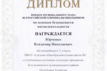 Ученик 11 - го класса стал призером регионального этапа всероссийской олимпиады школьников по основам безопасности жизнедеятельности (учитель Ридзель М.И.). Поздравляем !!!