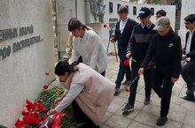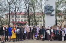 Бәйрәмдә безнең мәктәп укучылары да булды, алар чәчәк салу церемониясендә катнаштылар.