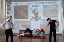Поздравляем театральный коллектив нашей школы с победой в номинации "Оригинальный жанр", на муниципальном этапе республиканского фестиваля-конкурса школьных театральных коллективов на английском языке «School performances». . Учащиеся 5-6 классов, под руководством учителей английского языка Козыревой М.С. и Валииевой Г.И., представили вниманию зрителей постановку "Добрый, Злой и Гадкий". Поздравляем наших юных артистов и желаем дальнейших успехов!