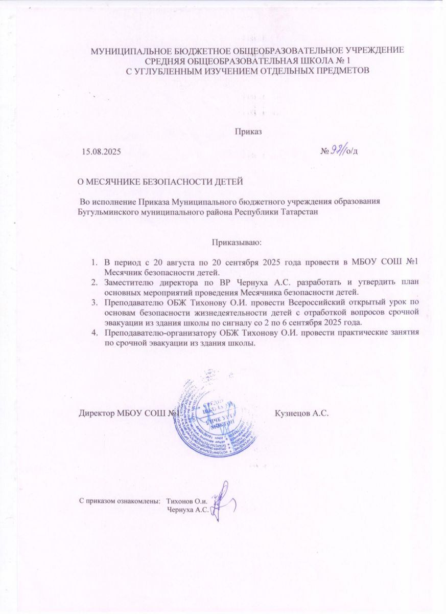 приказ "Месячник безопасности детей"