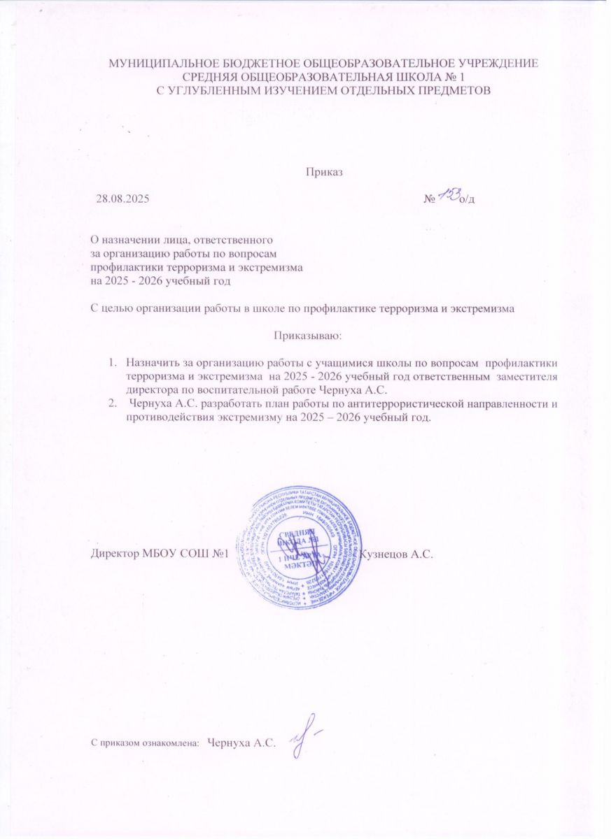 ОТЧЕТ ПО АНТИТЕРРОРИСТИЧЕСКОЙ ЗАЩИЩЕННОСТИ И ПРОТИВОДЕЙСТВИЮ ЭКСТРЕМИЗМУ В МБОУ СОШ №1