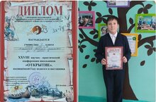 Поздравляем ученика 7 класса Сабитова Даниила с победой в IV Республиканской научно - практической конференции для школьников имени Героя Советского Союза Газинура Гафиатуллина.