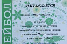 Команда девочек МБОУ СОШ № 11 приняла участие в первенстве города Бугульмы по волейболу среди женских команд, посвященном Международному женскому дню 8 Марта.