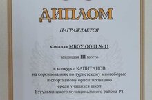 Галеев Богдан, Фаррахов Родион, Романова Елизавета, Хрестоферов Алексей приняли участие в соревнования по туристическому многоборью и спортивному ориентированию среди учащихся школ Бугульминского муниципального района РТ. И даже смогли принести в школу 3 место.