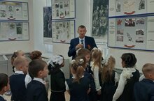 Экскурсию для первоклассников провёл руководитель музея Дятлов Алексей Вениаминович. Затаив дыхание, ребята слушали его рассказ о Великой Отечественной войне, о героических подвигах земляков на фронте и в тылу врага, о боевых наградах.