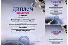 Поздравляем учащихся 2 класса Федотову Ксению с 1 местом и Дюкова Кирилла со 2 местом, а также ученика 3 класса Федотова Михаила с 1 местом в Республиканском творческом конкурсе, посвященного Дню авиации и космонавтики "Поехали!"