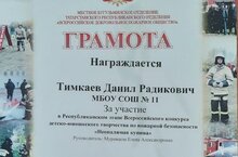Поздравляем участников Республиканского этапа Всероссийского конкурса детско-юношеского творчества по пожарной безопасности "Неопалимая купина" 2 класса МБОУ СОШ 11: