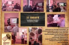 Сегодня в школе прошло мероприятие посвященное Дню полного освобождения Ленинграда от фашисткой блокады.Учащиеся узнали много нового об исторических фактах, связанных с этим событием. Ученики смогли побывать в роли военного медика, работника хлебопекарни, строителя "Дороги жизни", рассчитать меру "Блокадного хлеба", почтили память погибших минутой молчания.