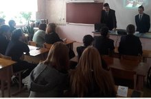 Прошёл месячник гражданско-патриотического воспитания в формате линейки. На встречу пришли капитан военно – воздушных сил Гараев Линар Мухтарович, а так же председатель совета БРО «Боевое братство» Прошин Леонид Леонидович .Ребята с удовольствием задавали гостям вопросы о военной службы.