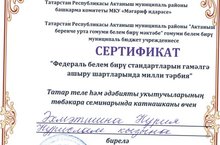 21 февраля 2017 года в СОШ № 1 Актанышского муниципального района состоялся межрегиональный научно-практический семинар учителей татарского языка и литературы по теме «Национальное образование в условиях реализации ФГОС». Участницей данного семинара стала Ахметшина Нурия Нурисламовна, учитель татарского языка и литературы МБОУ ООШ №12. В рамках работы семинара учителя обменивались своим педагогическим опытом за круглым столом. Им были вручены сертификаты участников научно-практического семинара. Также был опубликован методический сборник «Национальное образование – будущее нации», куда вошли лучшие разработки уроков, внеклассных мероприятий, выступлений. В данный сборник вошли разработки двух учителей нашей школы: Ахметшиной Нурии Нурисламовны и Загидуллиной Диляры Рафиковны.