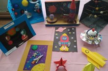 Ко дню космонавтики с 8 по 12 апреля в школе проходит конкурс-выставка поделок, макетов и плакатов.