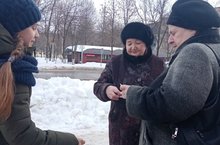 Отряд " Тимуровцы" школы №12 поздравили женщин микрорайона с наступающим праздником 8 Марта.