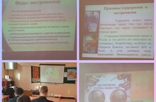 Особое внимание в нашей школе уделяется минуткам безопастност на тему "Антитеррор". С учащиемия 9 клсса была прведена беседа на тему "Экстремизм-угроза обществу"