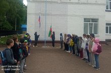 Утро понедельника в пришкольном лагере «Солнышко» началось с поднятия флага РФ и РТ и исполнения гимна, далее последовала традиционная зарядка, где ребята получили порцию бодрости и хорошего настроения на весь день. После завтрака наступила пора для развлечений.