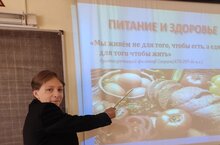 В школе проходит акция "Основы здорового питания в школе и дома". Старшеклассники провели занятие для младшеклассников. Вначале школьники ознакомились с основами ЗОЖ и поговорили о влиянии питания на организм человека.