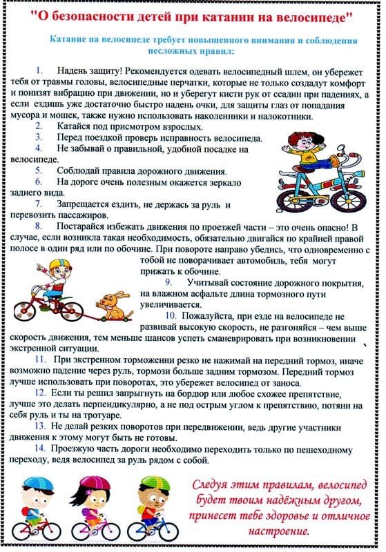Памятка "О безопасности детей при катании на велосипеде