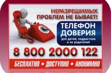 Для оказания психологической помощи детям, подросткам и родителям в трудной жизненной ситуации создан детский телефон доверия: 8-800-2000-122. Звонок анонимный и бесплатный.