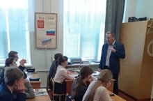 В основной школе с обучающими прошла беседа об изучении и формировании уважительного отношения к законам, о 100-летии образования ТАССР и 75-летии Великой Победы с участием Романова Н. А., депутата по «Деповскому» избирательному округу №20