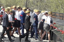 Церемония возложения цветов к мемориалу Памяти воинам, умершим от ран в госпитале г. Бугульмы.