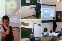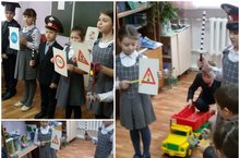 Четвероклассники пришли к малышам рассказать о правилах дорожного движения.