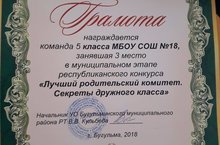 Родительский комитет 5 класса принял участие в муниципальном этапе конкурса "Секреты дружного класса"
