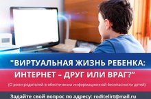 Уважаемые родители! 19 января 2018 г. в 12:00-13:30 пройдет родительское интернет-собрание на тему "Виртуальная жизнь ребенка: интернет - друг или враг?"