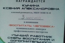 В Бугульме завершился муниципальный этап конкурса профессионального мастерства классных руководителей «Воспитать человека», который проводится в рамках республиканского конкурса. Кучина Ксения Александровна, классный руководитель 8 класса, заняла 3 место. Поздравляем!