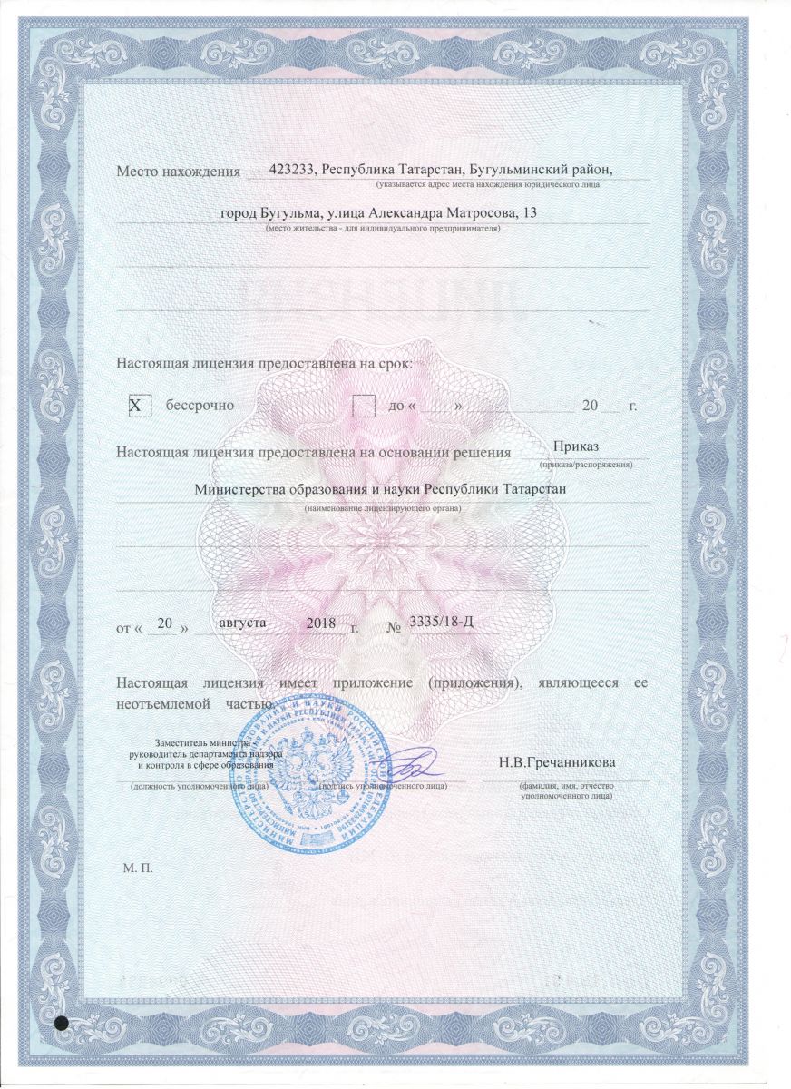 | Адрес: | 423233 РТ г. Бугульма, ул. Александра Матросова, д. 13 |