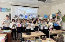 Учащиеся 4в класса с классным руководителем Пантелеевой Ириной Николаевной провели тематическую беседу и организовали выставку рисунков «Космическая история», посвященную 65- летию полета Юрия Гагарина и Дню космонавтики.