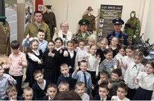 Ученики 1 "А" класса вместе с классным руководителем З. Р. Ханнановой посетили Мобильный музей истории пограничных войск.