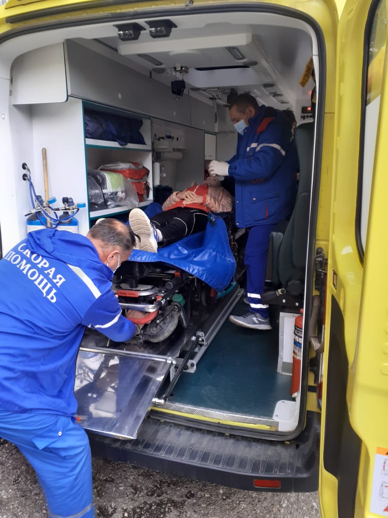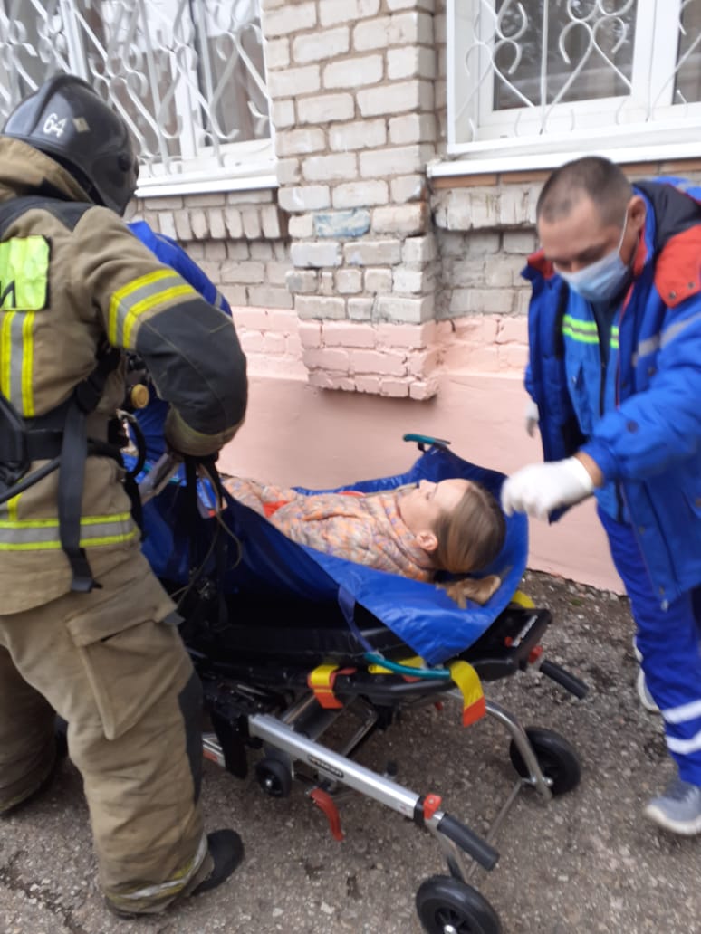 Прибывший боевой расчет 64 ПСЧ (3 спасателя) поднялись на второй этаж в кабинет физики одели пострадавшему спасательный конюшен и вывели его из школы.