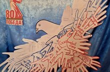 Ребята обвели свои ладошки на бумаге, вырезали их и написали на них свои пожелания. Из детских ладошек участников получился «Голубь мира».