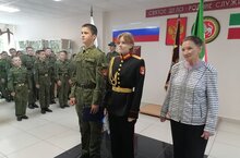 Председатель школьного отделения «Движения Первых» Айнур Гизатуллин произнёс слова торжественной клятвы Движения. Кадеты 5 и 6 класса с гордостью повторяли текст.