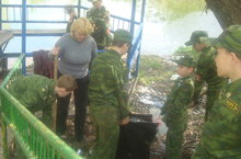 Кадеты 7 класса с учителем биологии Чесноковой Е.В. провели экологический урок, котрый увенчался уборкой родника бугульминского водоёма.