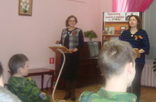 Кадеты посетили Центральную бибилиотеку, где состоялось очередное заседание клуба "Созвучие" "Писатели-фронтовики о войне". Ребята познакомились с творчеством Когана, Твардовского, Дружининой, Симонова, Джалиля, Окуджавы, вместе спели военные песи и почтили память погибших минутой молчания.