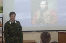 Сегодня учитель литературы Мельникова Н.И. и педагог-библиотекарь Недошивина Л.А. провели с одиннадцатым классом «Лермонтовские чтения», на которых звучали произведения Лермонтова в исполнении кадет и вновь вспоминались эпизоды биографии великого поэта.