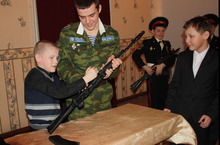 Кажется, совсем недавно эти мальчишки ходили в детский сад. А сегодня в кадетской форме стоят перед восторженными малышами. Подтянутые и строгие, в форме и с автоматами. Читают стихи о кадетской жизни и поют патриотические песни, показывают приёмы рукопашного боя. А после выступления можно дотронуться до оружия и сфотографироваться с героями дня. Наверняка многие мальчишки детсада №36, под впечатлением этой встречи, когда чуть-чуть подрастут, придут учиться в кадетскую школу.