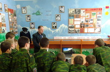 Афганская война длилась около 10 лет… За время необъявленной войны в Афганистане погибло 14 тысяч советских солдат и офицеров, ранено и пропало без вести около 35 тысяч. Об этом кадеты услышали сегодня от учителя истории Юсупова И.И. , который провёл сегодня «Урок мужества» в школьном музее «Боевой славы» около экспозиции, посвящённой воинам-интернационалистам.