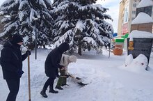 После очеедного снегопада, волонтеры 9 класса очистили от снега памятник 352-й стрелковой дивизии