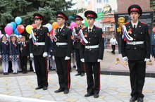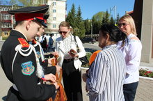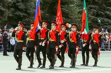 Кадеты выступили на параде Победы в качестве линейных, знаменосцев. Кадеты, в форме солдат, пронесли по площади штандарты фронтов Великой Отечественной войны. Взвод юнармейцев возглавил колонну школьников, коробка кадет завершила праздничное шествие