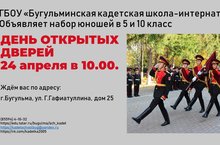 ГБОУ "Бугульминская кадетская школа-интернат" объявляет набор юношей в 5 и 10 классы.