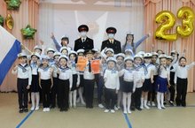 Юнармейцы поздравили детскадовцев с Днём защитника Отечества.