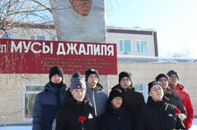 С 15 по 20 февраля в школе проходит Неделя родного языка, посвящённая 115-летию со дня рождения поэта-героя Мусы Джалиля. Сегодня учащиеся 9 класса вместе с учителем татарского языка посетили памятник Герою: провели небольшой митинг, возложили цветы и раздали прохожим листовке с информаией о Джалиле .