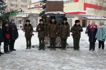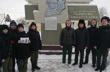 В рамках школьного проекта «Чтобы знали! Чтобы помнили!», кадеты расчистили от снега памятник на улице имени Героя, провели митинг и раздали прохожим листовки с биографией Газинура Гафиатуллина.