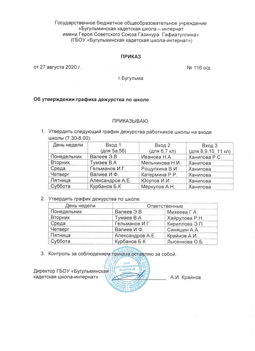 Об утверждении графика дежурства по школе приказ 116.jpeg