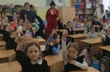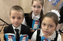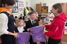 Ребята из направления «Движение первых» вручили первоклассникам рюкзачки для обуви и замечательную