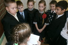 В начальных классах прошли новогодние утренники. Ребята водили хоровод вокруг ёлки, участвовали в освобождении Снегурочки, играли с дедом Морозом. В подарок от Деда Мороза ребята получили поучительную сказку "Если рядом добрый друг".