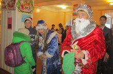 Они встречали детей и родителей с поздравлениями, а малыши в свою очередь рассказывали новогодние стихи Деду Морозу и получали сладкий приз.