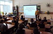 "Знакомство с жизнью и творчеством братьев Якобом и Вильгельмом Гримм". Ребята активно учавствовали в викторине.