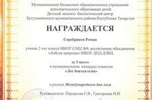 Учащийся Серебряков Роман стал победителем в конкурсе плакатов "Лес боится огня" и занял 3 место.
